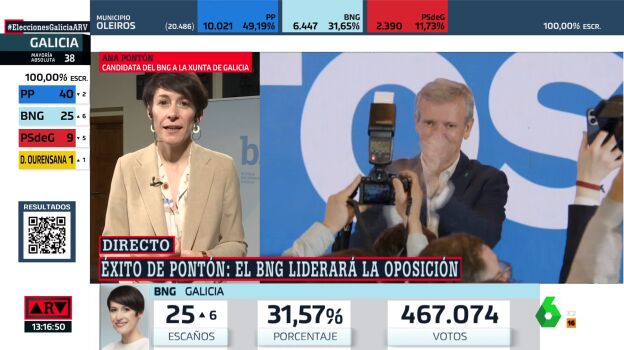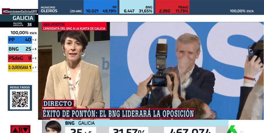 La portavoz nacional del BNG, Ana Pontón, ha analizado en una entrevista en Al Rojo Vivo los resultados de las elecciones gallegas, en las que el Bloque ha logrado su techo histórico. Un crecimeinto insuficiente para arrebatar la mayoría absoluta al PP de Rueda.