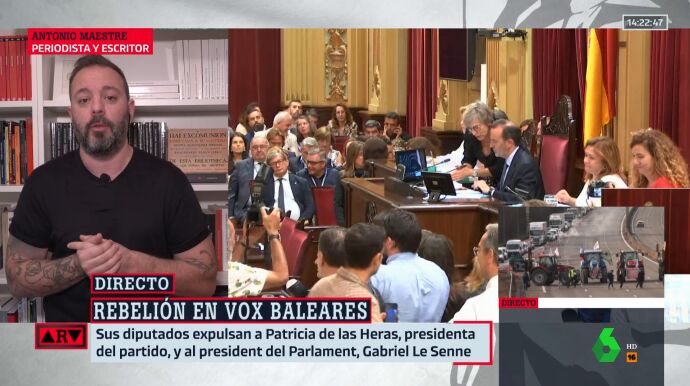 Antonio Maestre ha analizado en Al Rojo Vivo lo sucedido, asegurando que esto demuestra que la disolución que está viviendo Vox, por mucho que quieran "no la pueden reprimir". De esta forma, el periodista ha indicado que Abascal, lo que pretendía hacer adelantando la asamblea para votar al presidente del partido, era lograr que no pudiese "presentarse una lista alternativa".