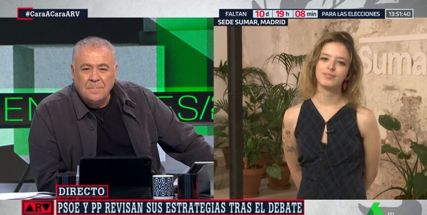 Elizabeth Duval ha analizado el debate entre Alberto Núñez Feijóo y Pedro Sánchez asegurando que cree que comparte la opinión de la mayoría de los españoles. "Fue un debate con mucho ruido y muy pocas propuestas", ha indicado.