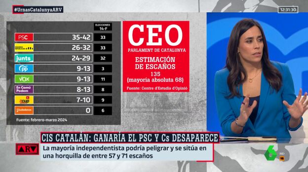 Tal como explica la periodista, "lo más interesante será ver si suman o no los independentistas y eso nos va a dar el indicador de si hay o no cambio de ciclo", pese a lo fuerte que esté el PSC.