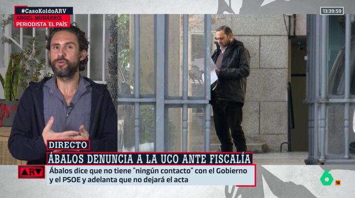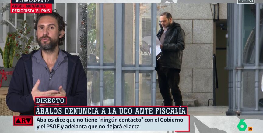 El periodista Ángel Munárriz, analista de El País y de Al Rojo Vivo analiza la comparecencia de José Luis Ábalos, en la cual ha anunciado que ha denunciado a la Guardia Civil, ante la Fiscalía, por investigarle "ilegalmente" siendo aforado y ha negado, además, ante los medios que se haya enriquecido por el caso Koldo.
