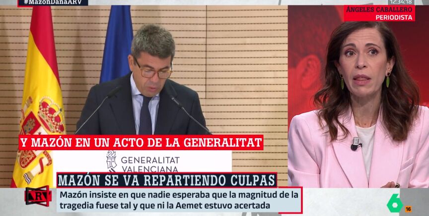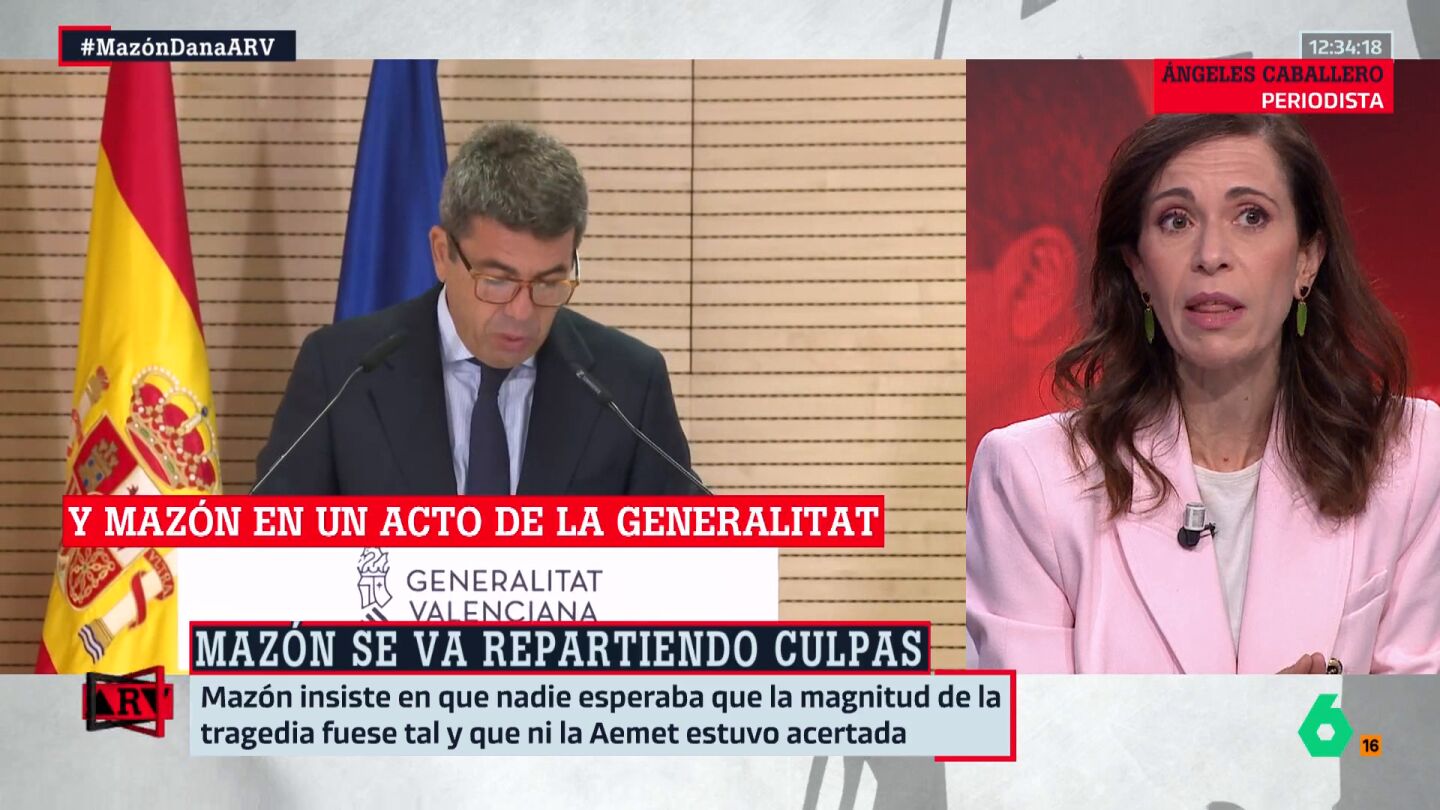 La periodista Ángeles Caballero valora la comparecencia de Carlos Mazón en la que no solo ha tirado de victimismo, sino que ha echado balones fuera y ha culpado de todo al Gobierno de Sánchez. En el vídeo, los detalles.