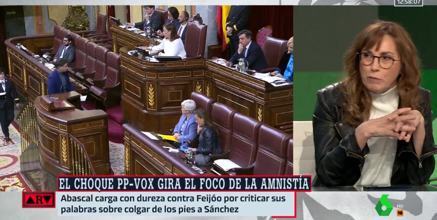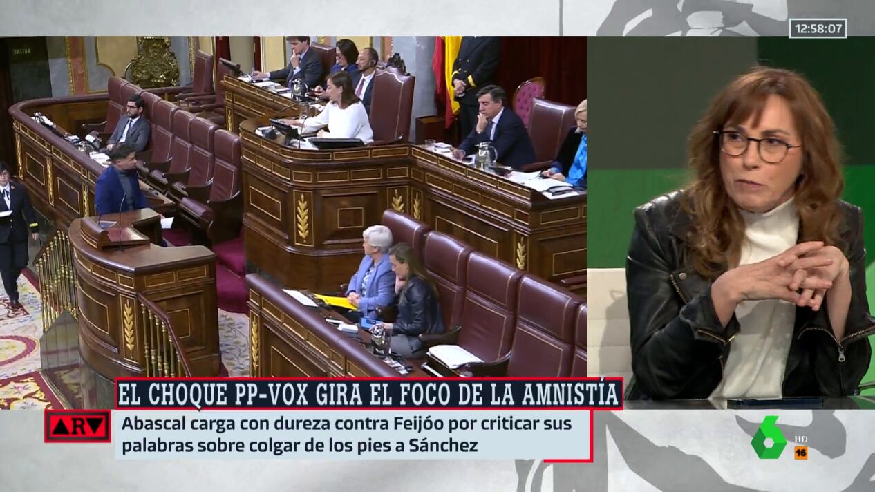 La periodista señala en Al Rojo Vivo que "PP y Vox no van a romper". Porque "de ninguna manera va a permitir Feijóo quedarse sin (el gobierno) de las 5 comunidades y los 130 ayuntamientos en los que gobiernan juntos".