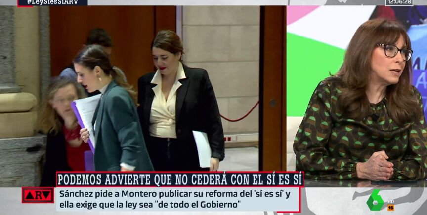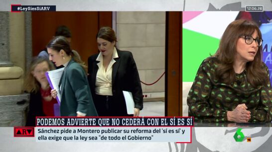 En este sentido, la periodista critica duramente el papel del departamento que dirige Irene Montero y asevera que "Igualdad se está convirtiendo en el Ministerio del 'no es no'". Una postura, afirma, "que nadie puede entender, dado que no se hizo la pedagogía que se tuvo que hacer en su día" y "se ha creado una alarma social que no se ha sabido atajar".