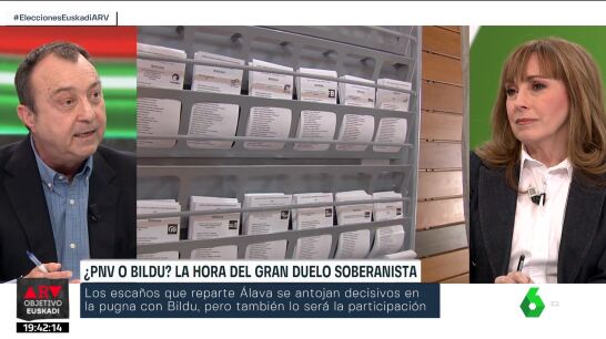 En los instantes previos a cerrarse los colegios electorales en las elecciones en Euskadi, el diputado del PP Manuel Cobo y la periodista Angélica Rubio han mantenido un intercambio de opiniones al hablar de los posibles escenarios que podrían presentar estos comicios.