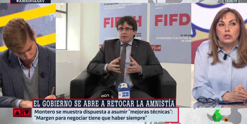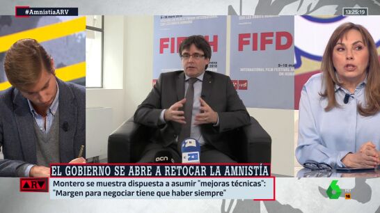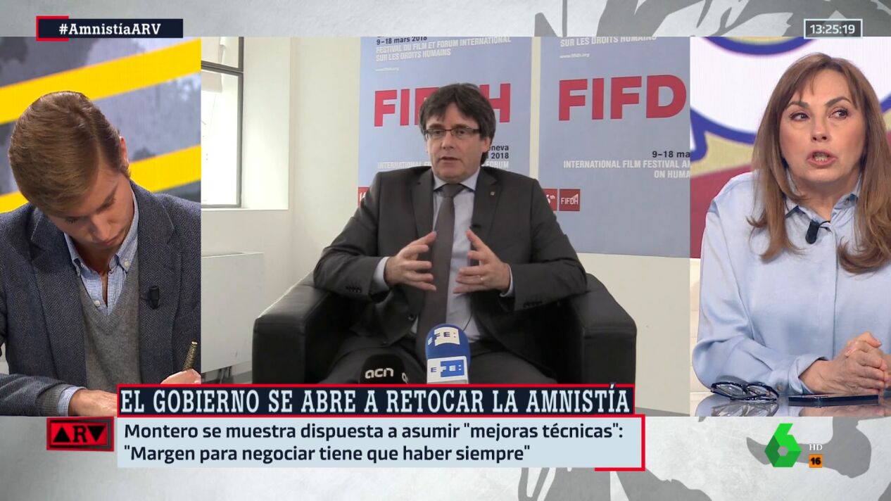 "Mientras no se aprueba la ley de a quien tiene la sartén por el mango es Pedro Sánchez", afirma Angélica Rubio en Al Rojo Vivo, sin embargo añade que "todo esto está un poco desdibujado porque ahora Junts no quiere la amnistía". Realmente sí la quiere, pero la quiere de forma integral, "100%", como le indica Ferreras. "O sólo para Puigdemont", bromea Antonio Maestre.