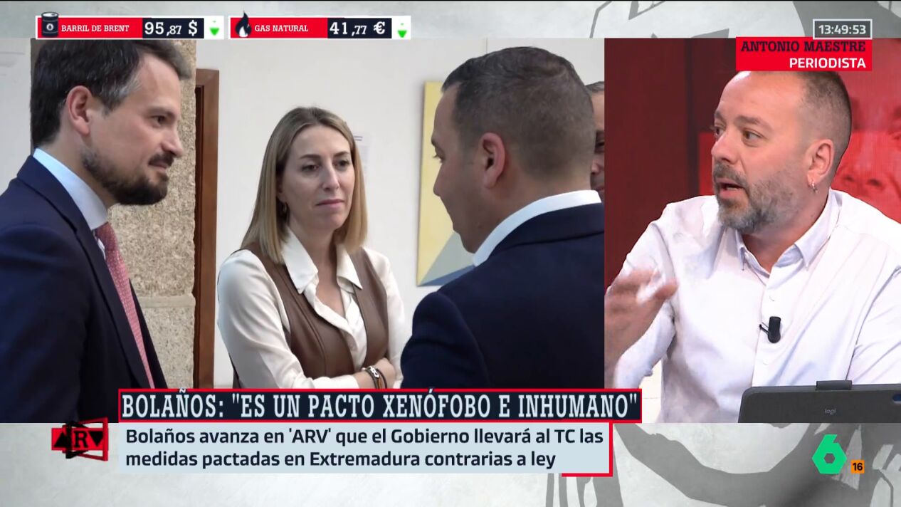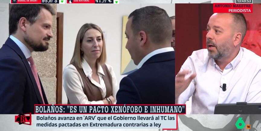 En Al Rojo Vivo, el periodista Antonio Maestre analiza las condiciones incluidas en el acuerdo entre PP y Vox para la formación del Gobierno en Extremadura. Entre ellas, destaca el rechazo al reparto de inmigrantes en situación irregular —tanto adultos como menores— y la prohibición del uso del burka y el niqab en espacios públicos.