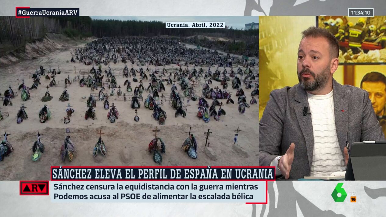 En pleno debate sobre la posición dividida en el Gobierno de España sobre el apoyo armamentístico a Ucrania, el periodista Antonio Maestre ha considerado "importante" en Al Rojo Vivo "asumir las consecuencias de los discursos y relatos", y ha ahondado en esta reflexión: "Cuando se habla de la paz en abstracto, no significa nada. Todo el mundo quiere la paz, especialmente Ucrania. El problema es: ¿cuáles son las consecuencias que se derivan de esos relatos y discursos si se llevaran a concreción?".
