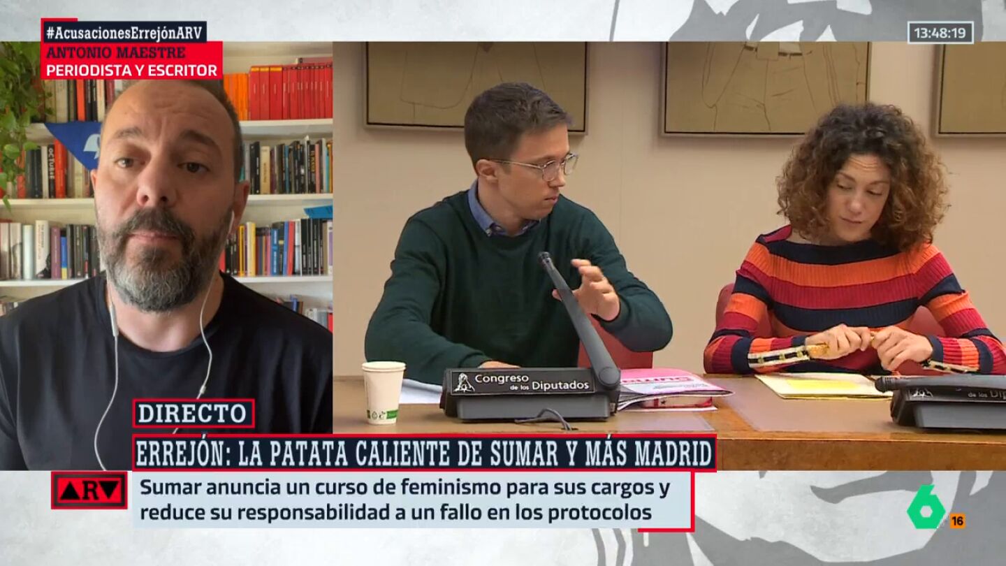 Antonio Maestre considera que el caso Errejón es el final de Sumar por el papel que jugaban Yolanda Díaz e Iñigo. "No se me ocurre cuál es la actuación que pueden llevar a cabo para que Sumar, un formación que no tiene organización prácticamente y se basa en figuras, pueda salir de esta", explica en directo.