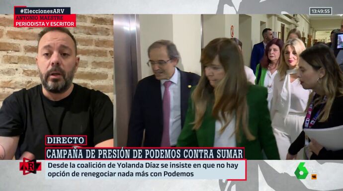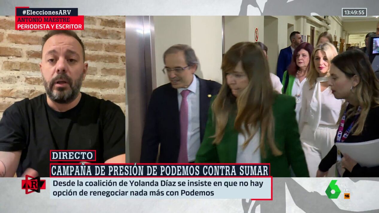 El periodista Antonio Maestre se ha mostrado tajante al hablar sobe el acuerdo al que han llegado Sumar y Podemos. "Esto es una coalición para las elecciones, no es la unidad de la izquierda", ha asegurado.