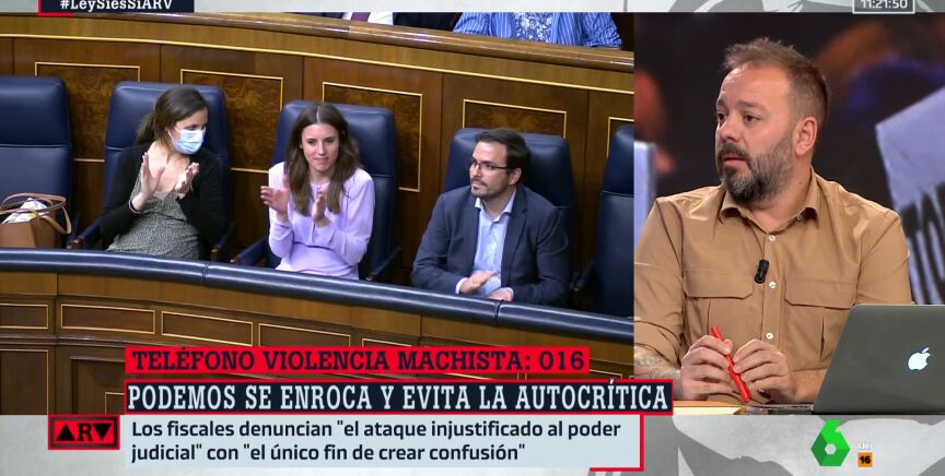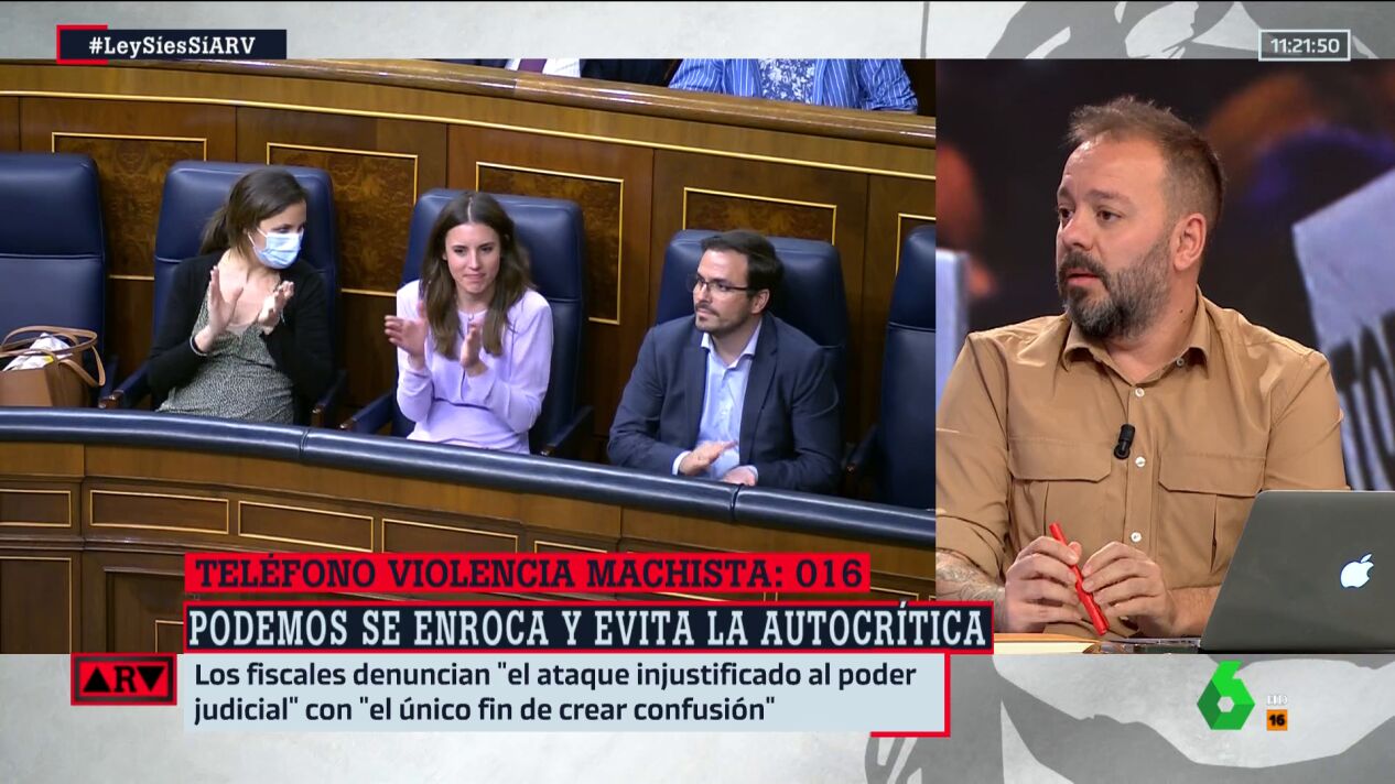 Antonio Maestre no tiene duda de que la ley del 'solo sí es sí' "es buena, necesaria", pero que sin embargo "ha sufrido una reacción incomprensible a la hora de defenderse". Así se ha expresado el periodista en Al Rojo Vivo, donde ha precisado: "Debería haberse defendido argumentando que una buena ley no es mejor por ser más punitiva. No es mejor la ley por tener penas más altas. La ley es buena a pesar de que la fusión de dos tipos delictivos pueda ocasionar en algunos casos una reducción de penas a algunos agresores".