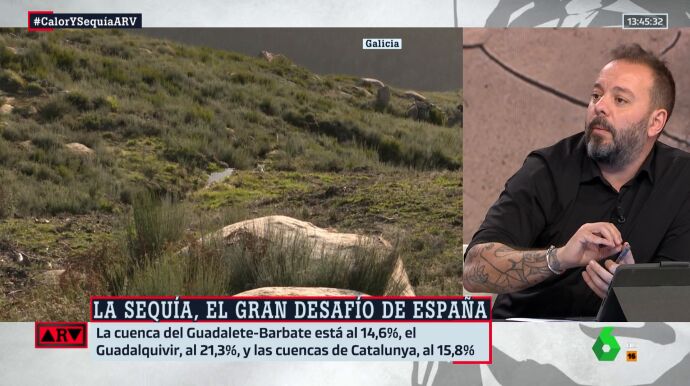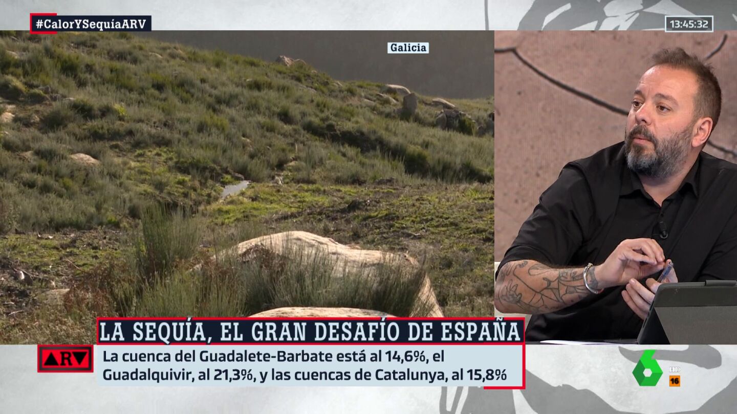 El periodista y analista de laSexta Antonio Maestre valora en Al Rojo Vivo cómo el agua en riesgo hídrico en España, algo que es "realmente un problema" y más aún, añade por su parte el presentador del programa, Antonio García Ferreras, "cuando somos una potencia turística".