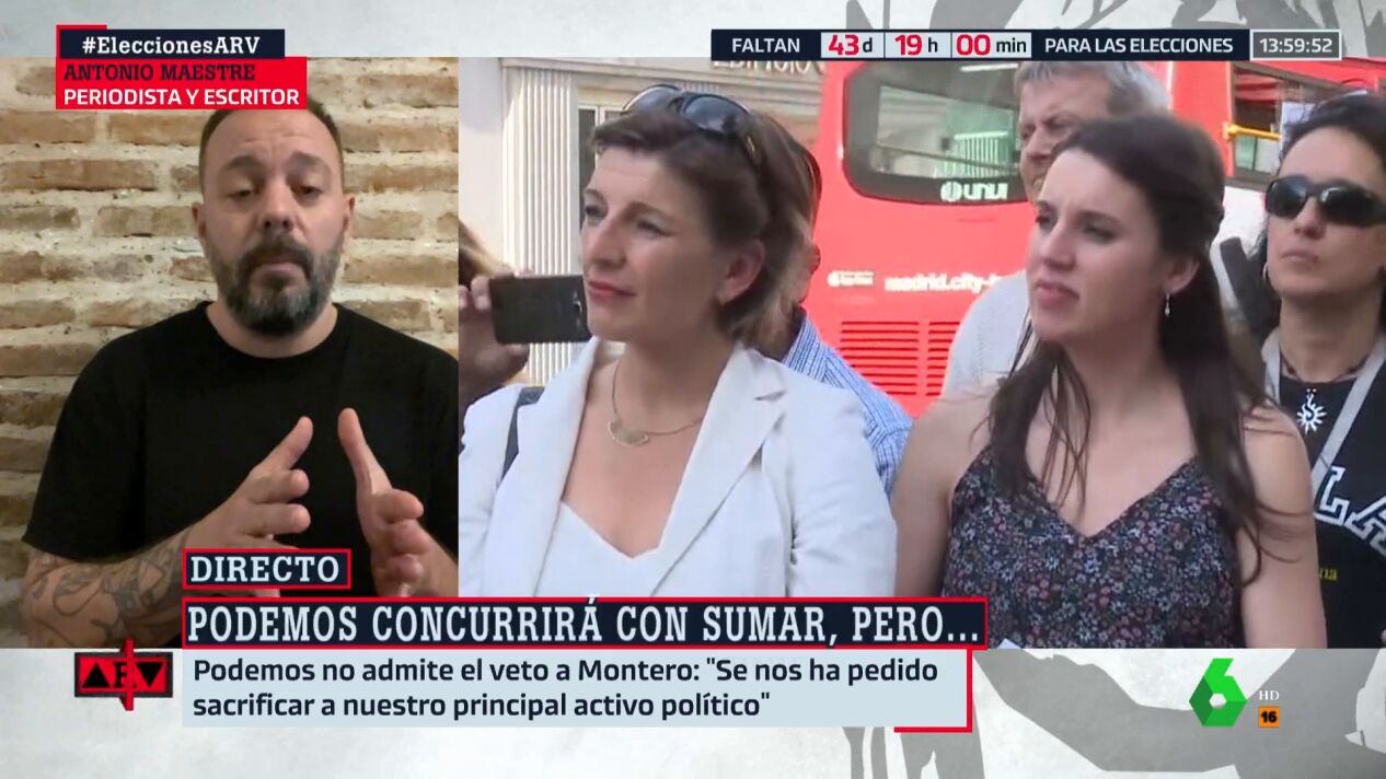 Si hay finalmente algún un acuerdo entre Unidas Podemos y Sumar para ir juntos a las elecciones del 23 J, "la izquierda seguirá rota", ha dicho el analista político Antonio Maestre en Al Rojo Vivo.