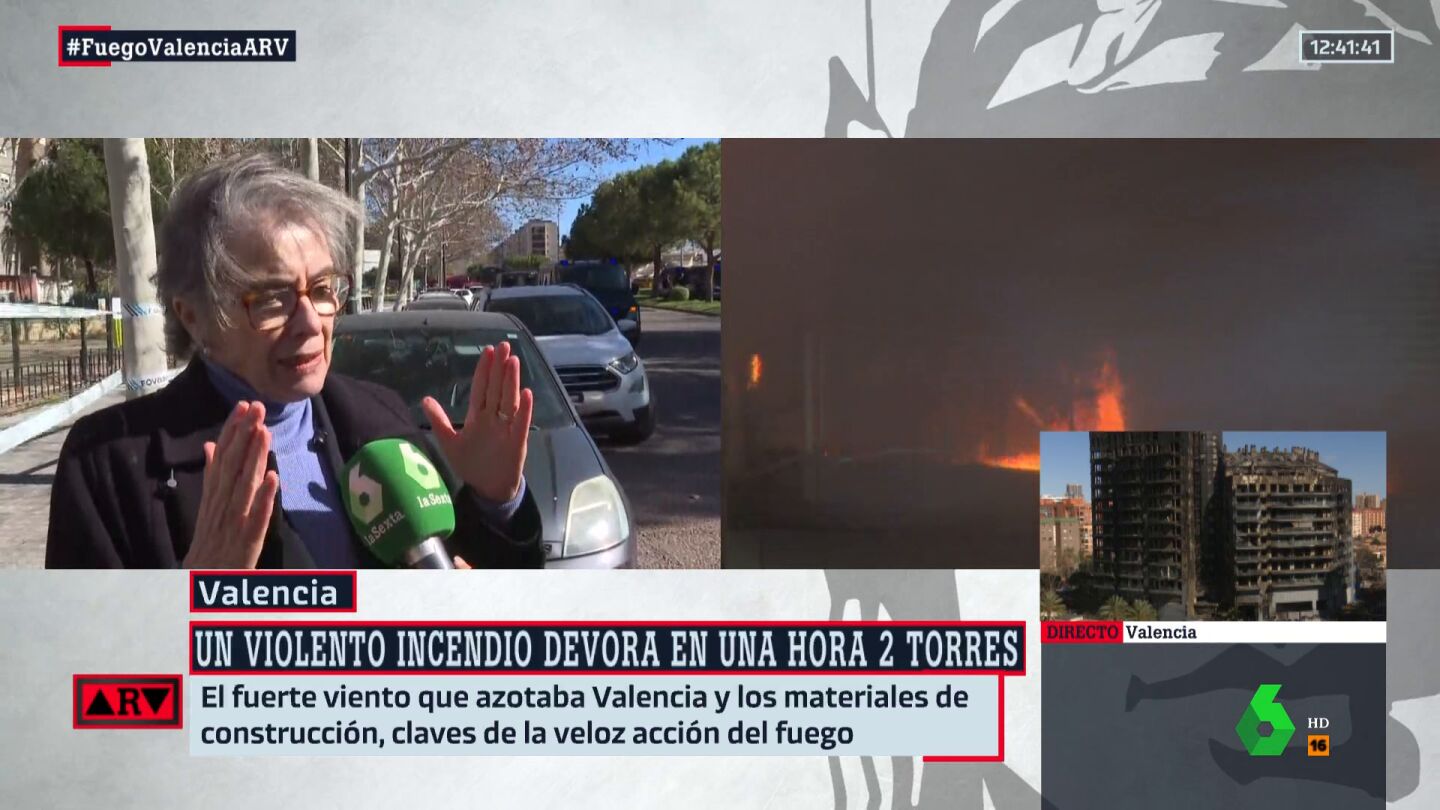 La arquitecta especialista en incendios, Carmen Torta, considera que algo no ha funcionado en el caso de las obras del edificio incendiado en Valencia. "Hay una premisa de partida en todo lo que es seguridad contra incendios: la fachada tiene que ser 100% incombustible", explica en declaraciones en Al Rojo Vivo.