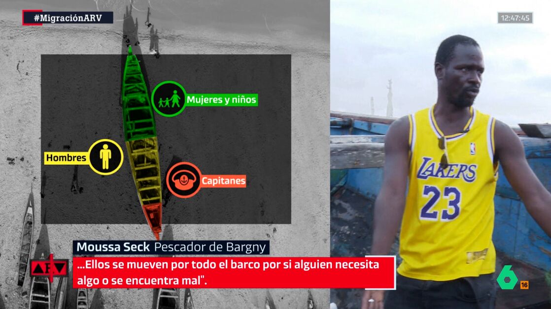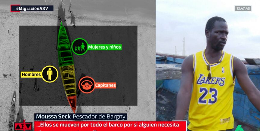 Moussa Seck, pescador de Bargny (Senegal), ha explicado a un equipo de laSexta de qué manera se distribuyen en los cayucos. "Se divide en tres partes", ha señalado.