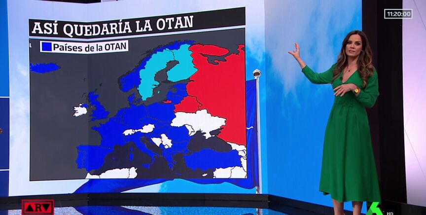 En el vídeo que ilustra estas líneas, la periodista Ana Cuesta ilustra cómo serían las nuevas fronteras entre la OTAN y los países ajenos a la organización con la entrada de ambos países, que supondría sumar casi 800.000 kilómetros cuadrados de nuevo territorio a la Alianza.