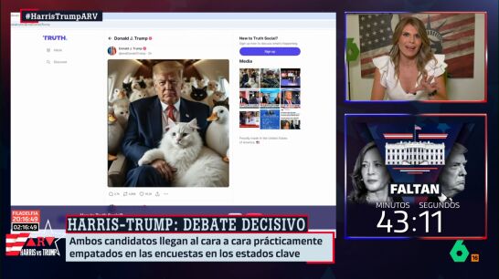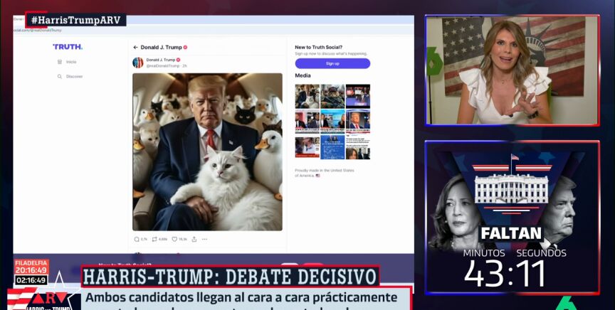 Donald Trump ha dedicado sus últimos mensajes en redes sociales a colgar imágenes creadas con inteligencia artificial en las que se le ve acompañado de gatos y patos. No se trata de una imagen casual, sino que está relacionado con un bulo que los miembros del partido republicano han agitado.