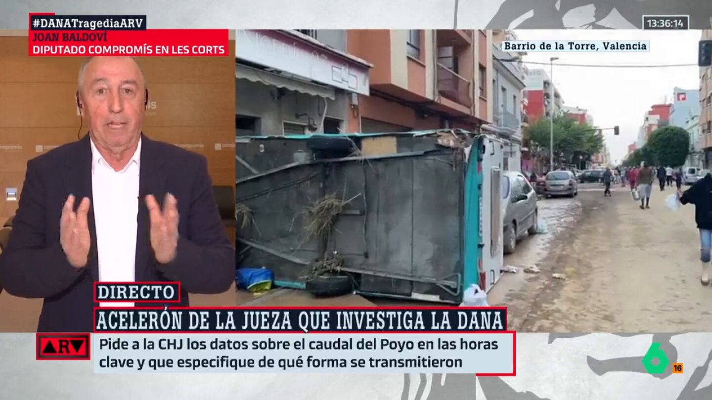 En cuanto a la información que la magistrada ha pedido a la Confederación Hidrográfica del Júcar (CHJ), pidiéndole que facilite los datos relativos al caudal del barranco del Poyo entre las 16:13 y las 18:42 horas de ese día y precise de qué forma se transmitieron, Joan Baldoví ha explicado que le parece bien que se haga.
