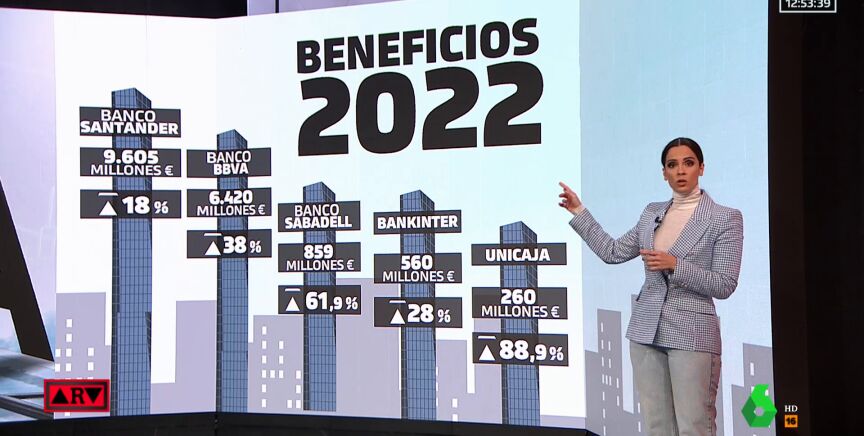 Santander, BBVA o Bankinter ya han dado a conocer sus datos de 2022, unas cifras que dejan constancia de que la banca española ha logrado resultados históricos de beneficios. En Al Rojo Vivo analizan el aumento de cada entidad.