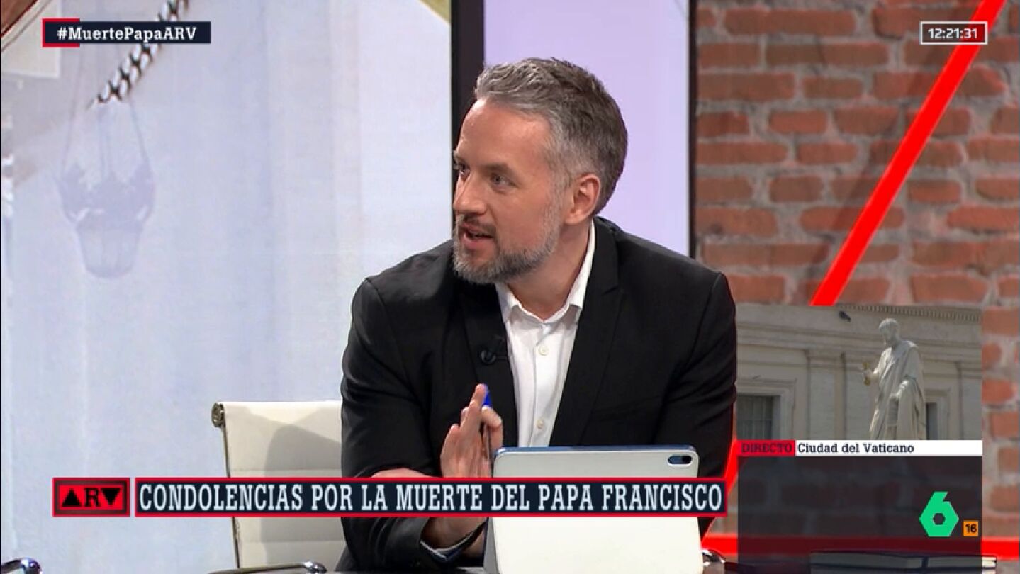 Tras estas palabras del ministro, el periodista Daniel Basteiro, corresponsal político de Bloomberg en España apoya las palabras de Antonio García Ferreras: "Este Gobierno estaba más cómodo con Francisco que Vox". Es más, "también ha dicho Bolaños que el camino que emprendió el papa Francisco debe continuar, con lo cual la posición del Gobierno está clara", afirma Basteiro.