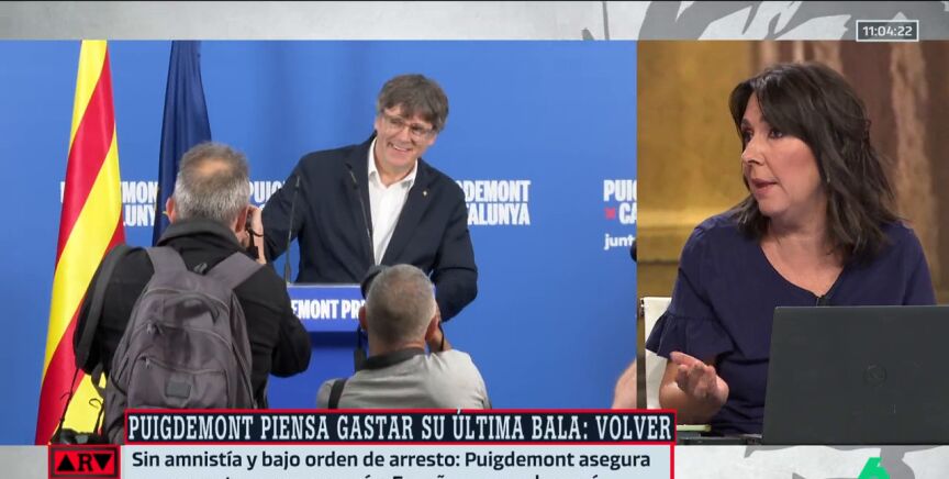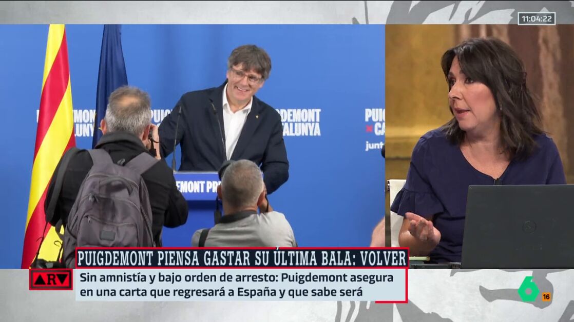 La periodista ha señalado que, si Puigdemont decide regresar a España, podría enfrentarse al ingreso en prisión "por tiempo indeterminado" ante el "evidente riesgo de fuga" que ha demostrado durante siete años de ausencia.