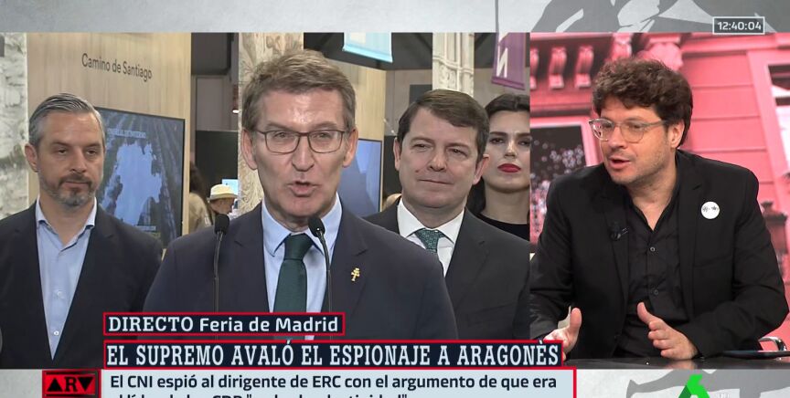 El director de Radioclable.com, Fernando Berlín, ha reprochado este viernes en Al Rojo Vivo las declaraciones del presidente del PP, Alberto Núñez Feijóo, sobre el supuesto espionaje a Pere Aragonès por el CNI. El periodista ha señalado la doble vara de medir del 'popular': "Le parece un escándalo y lo del Gobierno de Rajoy son 'menudencias'".