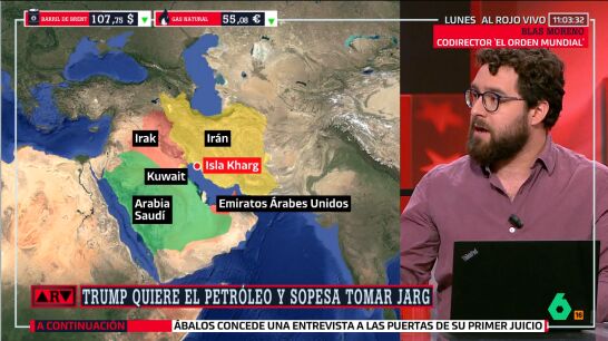 Blas Moreno, codirector de 'El Orden Mundial', ha expresado en Al Rojo Vivo que "cada vez" tiene "menos dudas" de que estamos en las horas previas a una invasión a la isla de Jarg por parte de EEUU.