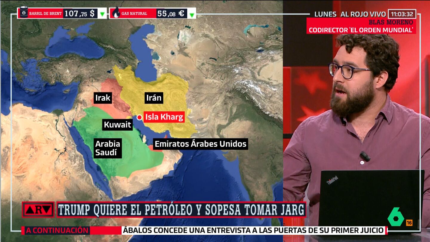 Blas Moreno analiza los planes de Trump en Irán: "Cada vez está más claro que el objetivo es la isla de Jarg, que es crítica en el Golfo Pérsico"