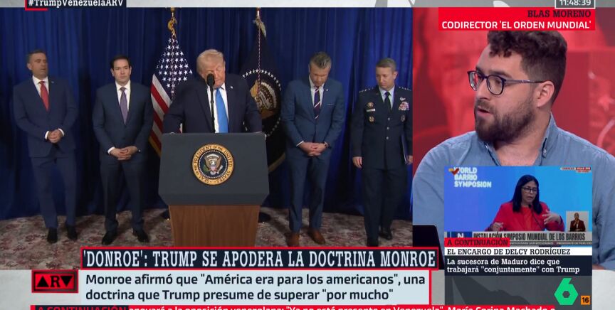 Blas Moreno explica la 'doctrina Monroe' a la que se aferra Trump: "Lo miremos por donde lo miremos, lo que ha hecho es ilegal"