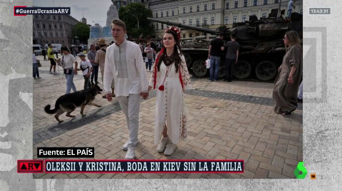 "Los anillos que tenemos son de Kramatorsk, son de Donbás, es bastante simbólico", detalla Oleksii. Otro de los símbolos son las fotografías: "La boda fue enfrente del tanque destruido ruso en una de las plazas centrales de Kiev, que añade un poco de simbolismo a este acontecimiento".