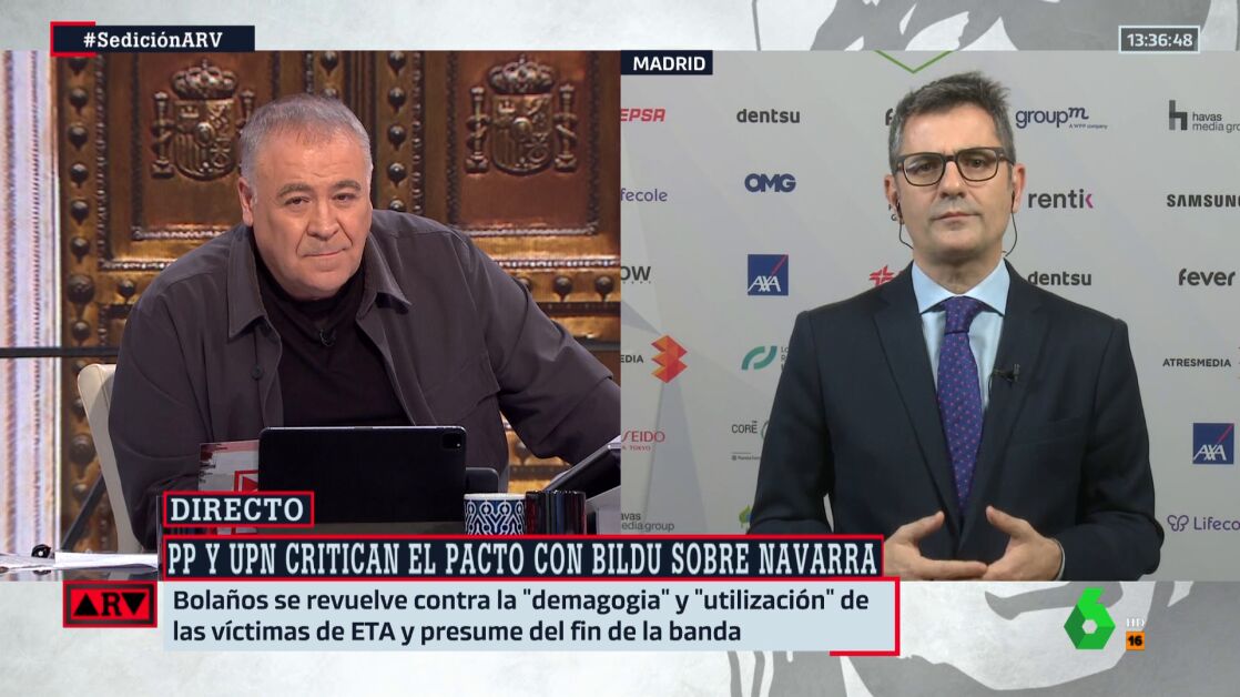 Félix Bolaños ha respondido al PP tras las críticas recibidas por el traspaso de las competencias de Tráfico a la Policía Foral de Navarra. Carlos García Adanero (PP) ha acusado al PSOE en el Congreso de darles "la llave para que abandonen Navarra" a las personas que "disparaban" y que "volaron casa cuartel de la Guardia Civil".
