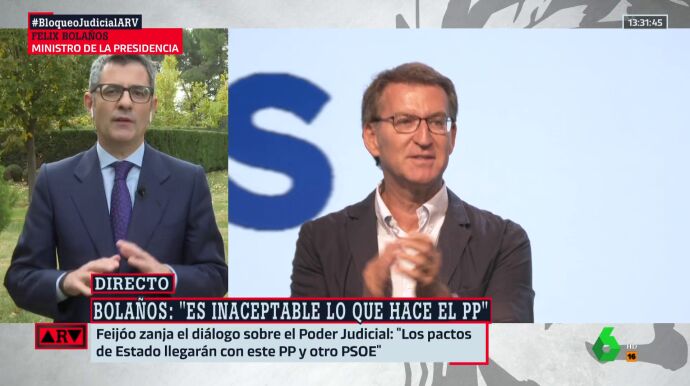 El ministro de la Presidencia, Félix Bolaños, ha respondido a Alberto Núñez Feijóo tras afirmar que los pactos de Estado llegarán "con este PP y con otro PSOE" tan solo un día después de suspender las negociaciones con los socialistas por la intención del Gobierno de reformar el código penal para reducir las penas por el delito de sedición: "El contador de excusas del PP es inagotable, es infinito, no sé si esta es otra preventiva".