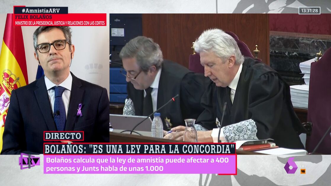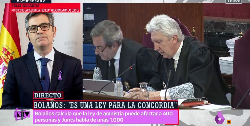 Preguntado por Antonio García Ferreras por la discrepancia con la cifra de amnistiados que maneja Junts, que sitúa la cifra en torno al millar, Bolaños la ha justificado explicando que su cálculo incluye solamente las "causas estrictamente penales", mientras que las causas contables y administrativas aumentarían el número.