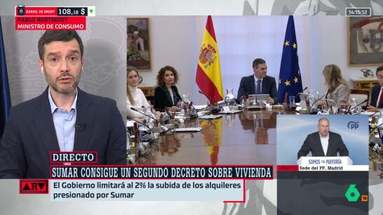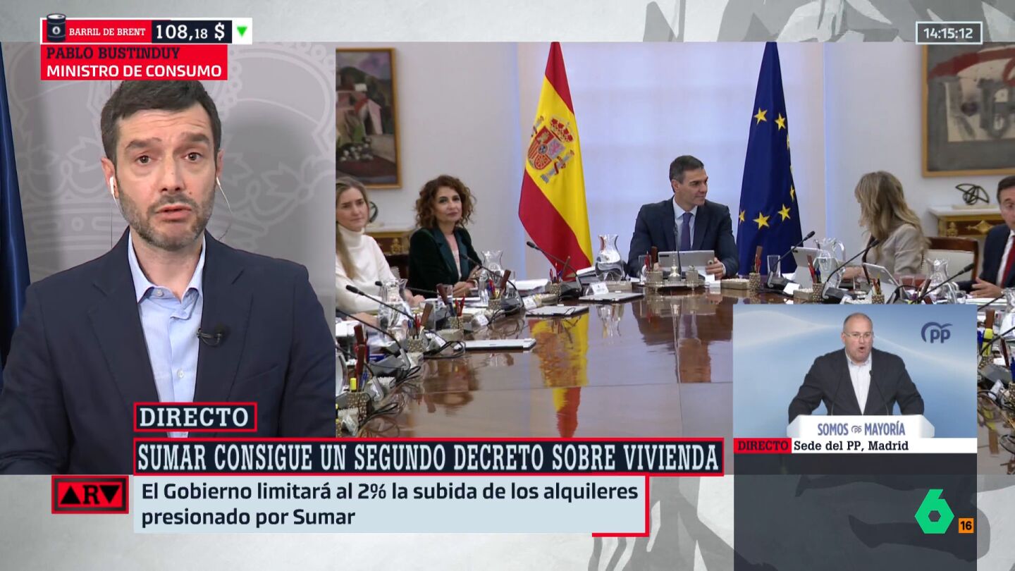 "Tenemos un mes por delante para tener toda la fuerza social para la movilización, para que en esa votación se vea claramente quién está a favor de proteger a millones de personas o quién está defendiendo otro tipo de intereses", responde Bustinduy a la pregunta directa de Ferreras. Porque aunque el decreto está aprobado en Consejo de Ministros tiene que pasar por el Congreso de los Diputados. Si no tienen mayoría, el decreto no sale adelante.