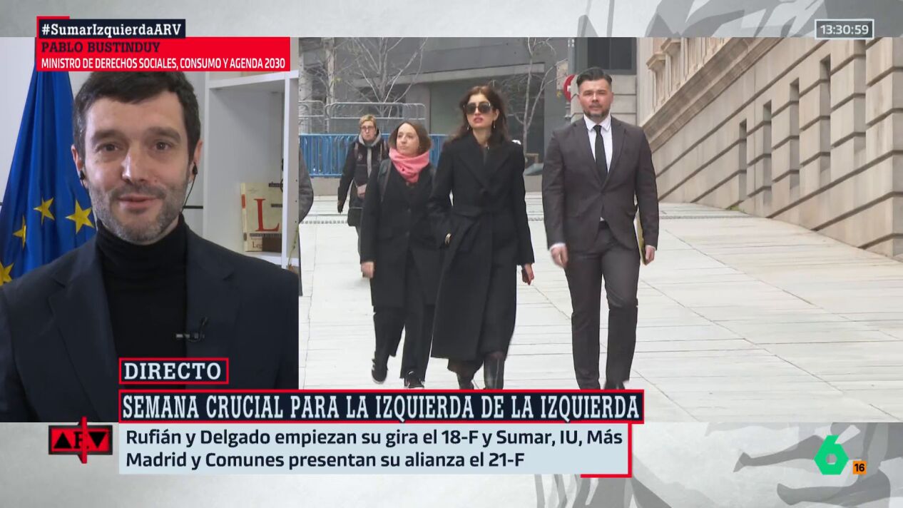 El ministro de Derechos Sociales, Consumo y Agenda 2030, Pablo Bustinduy, se ha pronunciado en Al Rojo Vivo sobre el deseo de Rufián de formar un bloque de izquierdas, un proyecto político que va a iniciar con un acto junto a Emilio Delgado. El ministro ha reconocido que está "muy contento" y es "optimista porque se está moviendo la izquierda, un montón de voces en lugares diferentes y cada una está aportando".