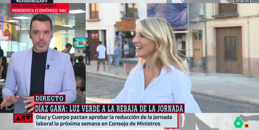 "¿Yolanda Díaz le ha ganado el pulso a Carlos Cuerpo?", pregunta Antonio García Ferreras a José María Camarero, periodista económico de ABC: "Se ha salvado sólo una primera bola de partido", responde.