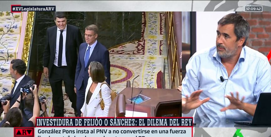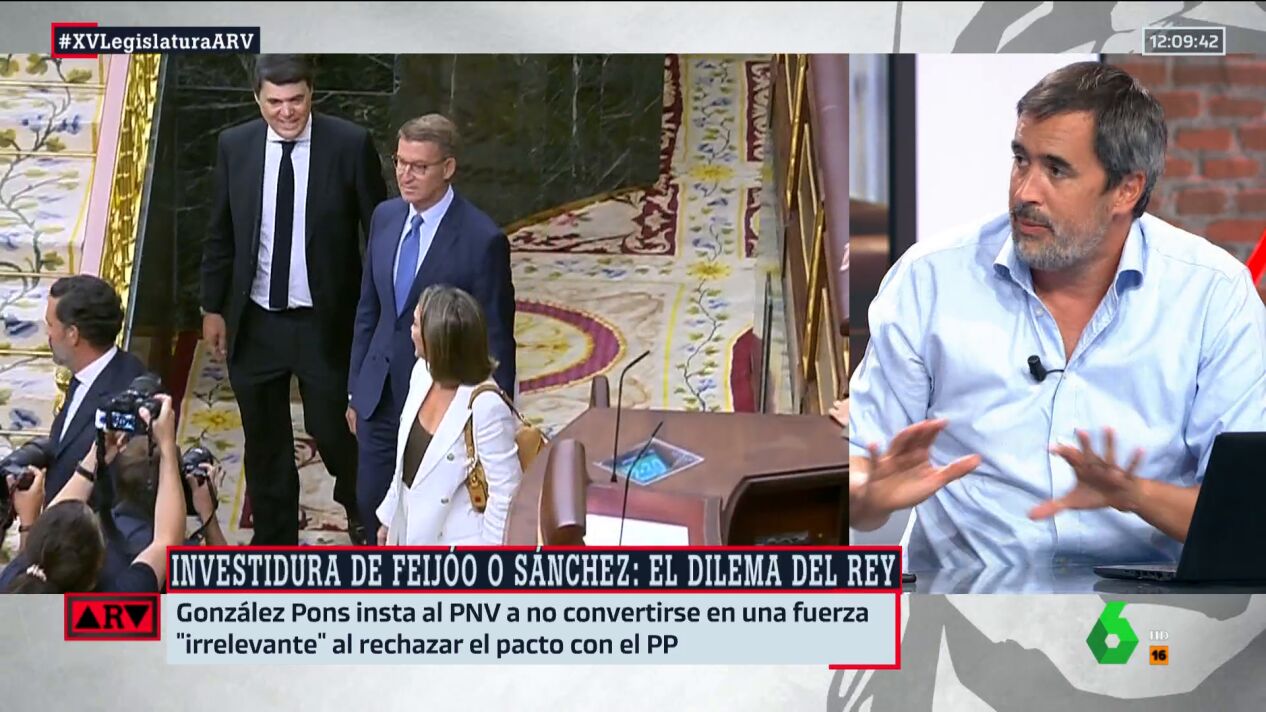El periodista ha advertido que el proceso de investidura "va a ser muy lento". Además, ha indicado que, aunque la política española da muchas vueltas, "siempre llega al PNV", recordando que ya han indicado que no apoyarán a Feijóo.