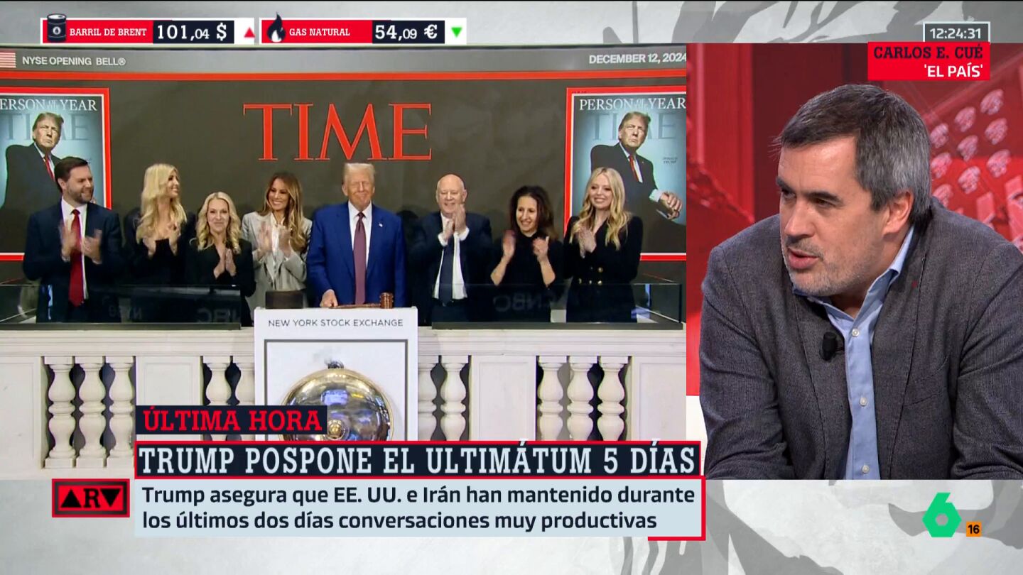 "Donald Trump es el caos. La gente ha votado caos y tenemos caos. Y el caos es esto. Lo que pasa es que ha visto que se le va de las manos", reflexiona Carlos Cué, periodista de 'El País', sobre el ultimátum de Washington a Irán y su decisión de aplazar cinco días cualquier ofensiva.