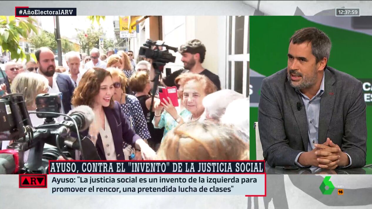 Isabel Díaz Ayuso ha criticado la justicia social asegurando que es "un invento de la izquierda". Un discurso que el periodista ha indicado que, de haber sido el pensamiento dominante en 1978, no se habría aprobado la Constitución.