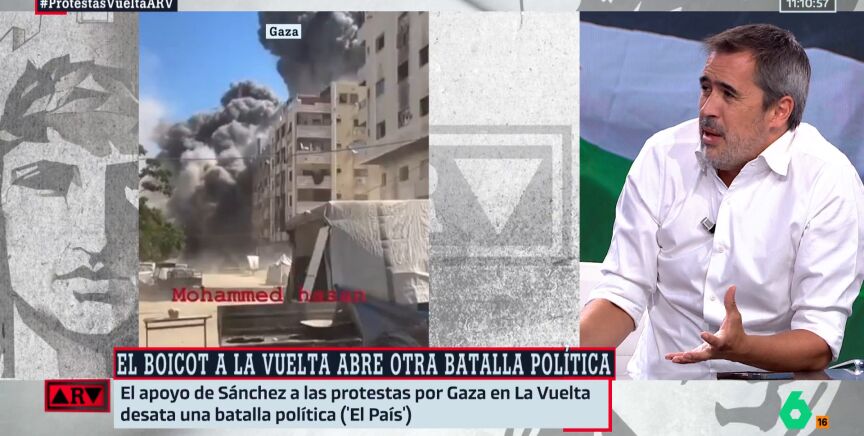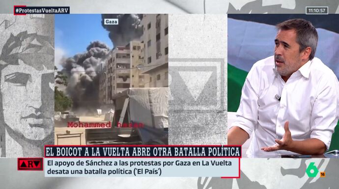 "¡Por favor, ha habido una protesta en la que no ha pasado absolutamente nada y que ha ocurrido lo que se esperaba que iba a pasar: que iban a parar La Vuelta", asegura el periodista, recordando la "barbaridad" y la "masacre" que estamos viendo a diario en Gaza, donde ya han muerto 65.000 personas.