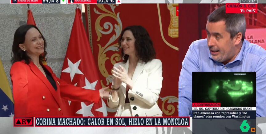 En Al Rojo Vivo, Carlos E. Cué, periodista de 'El País', analiza la reciente postura de María Corina Machado. Durante su visita a España, la líder opositora venezolana declaró que no pretende "involucrarse en la política interior" española, al tiempo que expresó sus deseos sobre el futuro electoral del país.