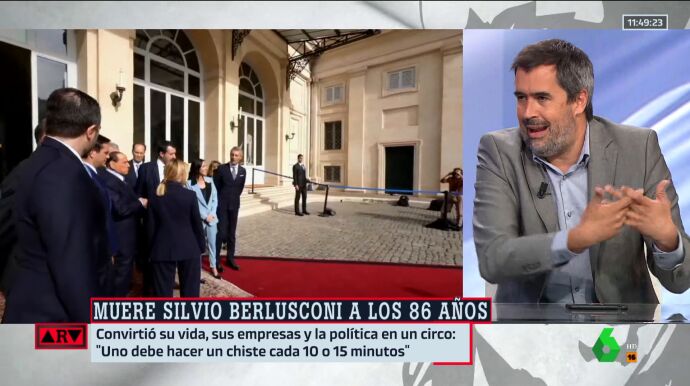 "Berlusconi ha sido el mayor destructor de políticos de la izquierda italiana, ha destrozado carreras con sus medios, ha hecho barbaridades. La máquina del fango se inventó allí, los medios de Berlusconi destrozaban a sus opositores, a periodistas, haciendo cualquier tipo de barbaridad. Lo que se ha hecho en la era Berlusconi en Italia con toda la política, el periodismo y la cultura de lo público...", ha zanjado.