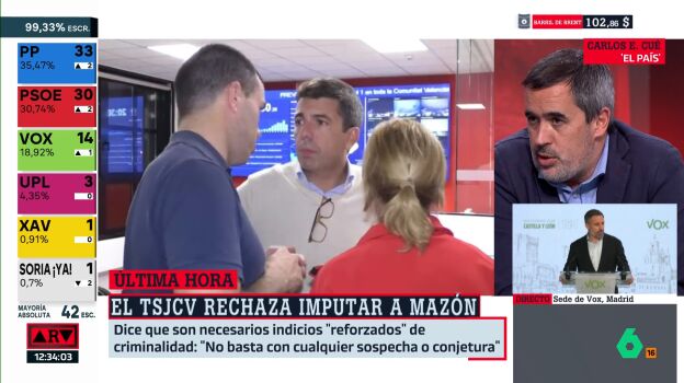El periodista de El País, Carlos Cué, señala que es "un tema muy serio el que Mazón siga siendo diputado con la que se ha caído encima de la mesa": "Si no le hacen la imputación ahora, será una cuestión de tiempo, será más adelante. Es evidente que todo este proceso acaba en esa imputación. Lo tendrán que investigar más".