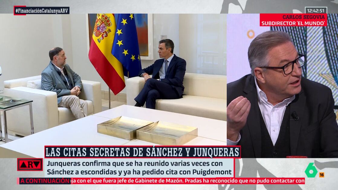 Antonio García Ferreras analiza en el plató de Al Rojo Vivo las declaraciones de Oriol Junqueras en las que ha asegurado que se ha reunido varias veces en secreto con Pedro Sánchez mientras desde Ferraz defienden que no tienen por qué dar explicaciones de sus reuniones. Además, desde el PSOE defienden el acuerdo con Junqueras sobre el modelo de financiación. Un acuerdo que, para sacarlo adelante, el Ejecutivo no solo se enfrenta a la dificultad de convencer a las comunidades en las que hay división, también debe hacer frente al aluvión de críticas y opiniones entre las voces socialistas. Algunos dicen apoyar al presidente, Pedro Sánchez, pero otros como Juan Carlos Rodríguez Ibarra, expresidente de la Junta de Extremadura, preferirían "perder las elecciones" antes "que la dignidad".