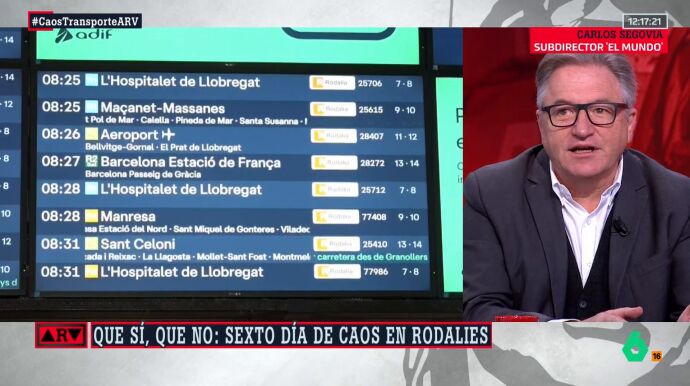 Para el periodista y subdirector de 'El Mundo' Carlos Segovia, la situación ha generado "un descontrol absoluto que provoca una profunda desconfianza entre la población". A su juicio, además, se percibe una clara falta de coordinación entre Renfe y la Generalitat de Cataluña.
