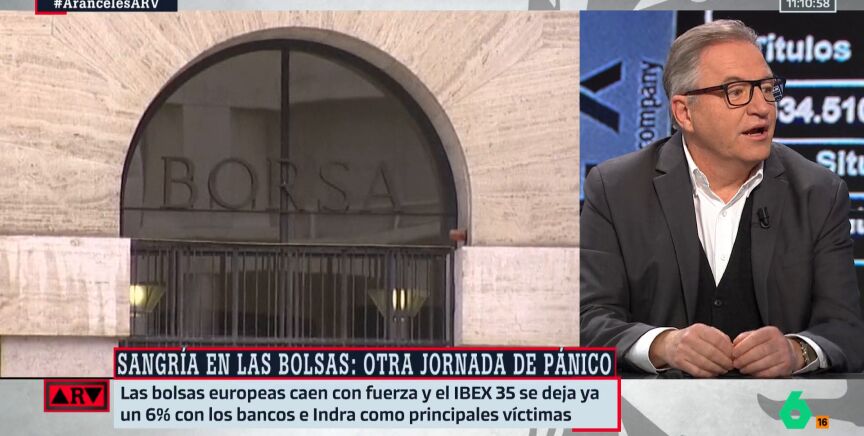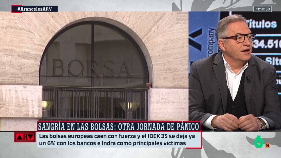 Tras los aranceles de Donald Trump, anunciados el pasado miércoles, este lunes, la sesión del IBEX 35 arrancaba con todos los valores en color rojo, con caídas superiores al 2%, algunos incluso rozando el 10%. "Vaticinábamos que esto iba a pasar este lunes, pero no sé si está siendo más profundo de lo que pensábamos", le pregunta Antonio García Ferreras al periodista de El Mundo, Carlos Segovia, que le da la razón.