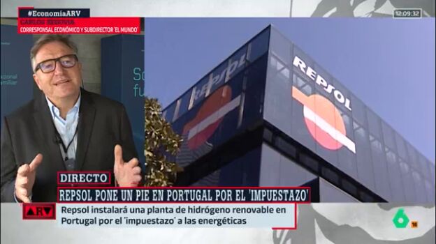 Carlos Segovia informa de que Repsolha plantado al Gobierno por el 'impuestazo' a las energéticas y se lleva una inversión a Portugal. En concreto, Repsol va a instalar una planta de hidrógeno renovable en la región de Sines con una inversión de 15 millones de euros. El periodista explica en el vídeo principal de etsa noticia todos los detalles: "La cúpula de Repsol ya llevaba tiempo advirtiendo de que ese impuesto para ellos era discriminatorio, arbitrario e inconstitucional".
