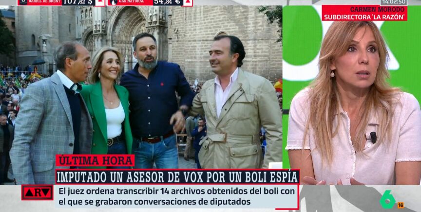 La subdirectora de 'La Razón' analiza el impacto de la imputación de un asesor de Vox por un boli espía y señala la desconfianza de Santiago Abascal, obsesionado con una supuesta operación del Partido Popular.