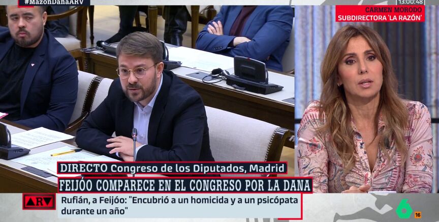 La periodista Carmen Morodo ha analizado en Al Rojo Vivo la comparecencia de Alberto Núñez Feijóo en la comisión de investigación sobre la DANA en el Congreso de los Diputados. Una sesión que estuvo marcada por interrupciones constantes, evasivas y mucho barro. El líder del PP basó su defensa en su larga trayectoria política y sostuvo que no tenía "ninguna autoridad" para contradecir las decisiones adoptadas por Carlos Mazón el 29 de octubre de 2024.