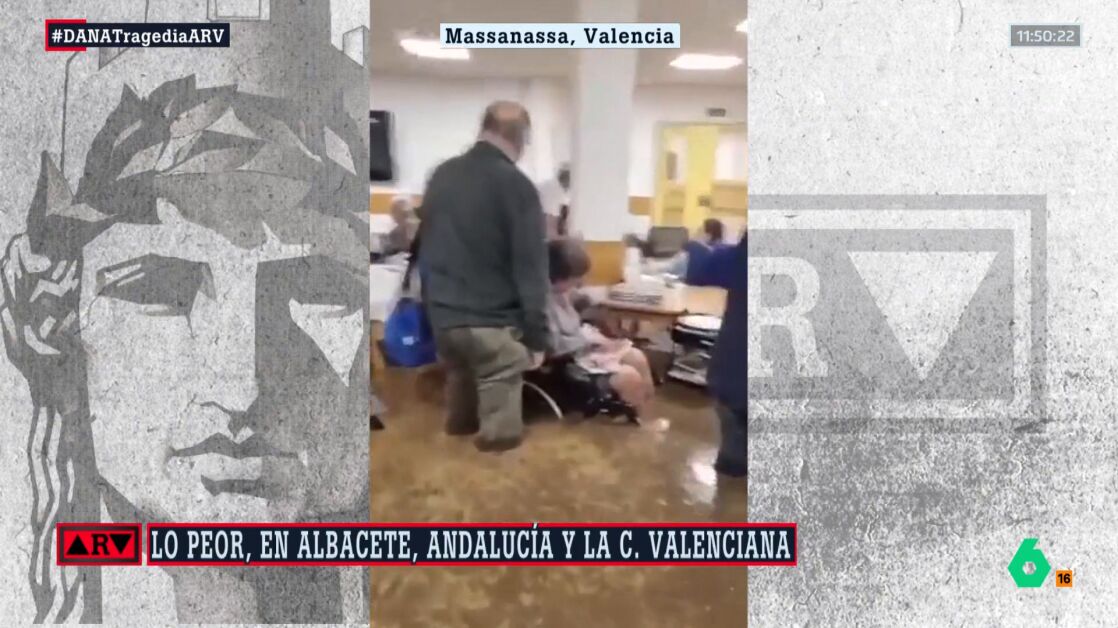 Catastróficas imágenes de una residencia de Massanassa: mayores atrapados en sillas de ruedas con agua por las rodillas